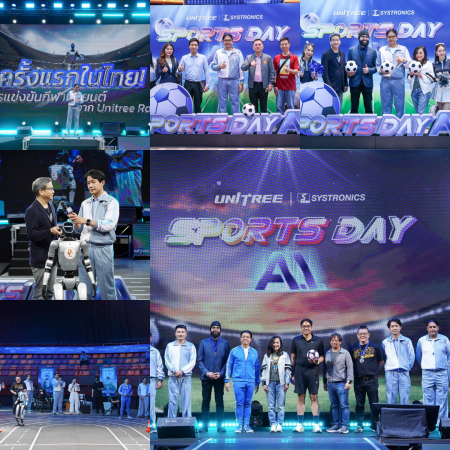 บริษัท ซิสทรอนิกส์ จำกัด นำโดย นายอัศวรรณ์ เรืองชู กรรมการผู้จัดการ พร้อมด้วยทีมงาน จัดงาน “Sports Day A.I.” ณ BEAT Active บางนา ซึ่งนับเป็นครั้งแรกในประเทศไทยที่มีการจัดการแข่งขันกีฬาหุ่นยนต์อย่างเต็มรูปแบบ ภายในงาน ได้นำหุ่นยนต์อัจฉริยะจาก Unitree Robotics มาจัดแสดงและเข้าร่วมการแข่งขันมากถึง 4 รุ่น ได้แก่ Unitree Go2, Unitree Go2-W, Unitree G1 และ Unitree H1 โดยมีการจัดกิจกรรมการแข่งขันที่หลากหลาย อาทิ การวิ่งแข่ง การวิ่งหลบสิ่งกีดขวาง และการแข่งขันฟุตบอล เพื่อแสดงให้เห็นถึงศักยภาพของหุ่นยนต์อัจฉริยะ และความก้าวหน้าของเทคโนโลยีปัญญาประดิษฐ์ (A.I.) ที่สามารถเคลื่อนไหวได้อย่างคล่องแคล่วและใกล้เคียงกับมนุษย์มากยิ่งขึ้น