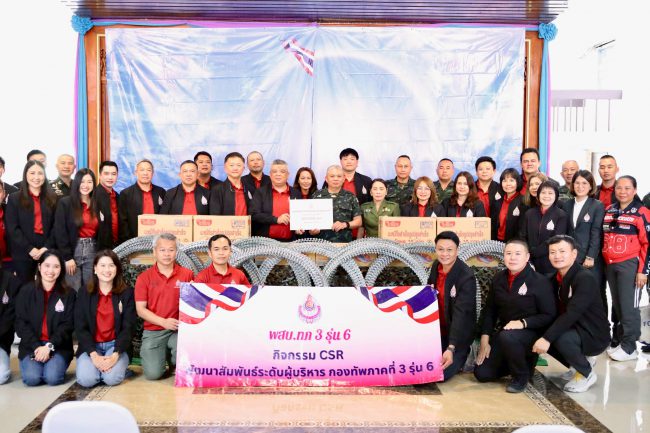รองแม่ทัพภาคที่ 3 เป็นผู้แทนแม่ทัพภาคที่ 3 รับมอบลวดหีบเพลงและสิ่งของบริจาคจาก พสบ.ทภ.3 รุ่นที่ 6 เพื่อสนับสนุนกำลังพลชายแดน