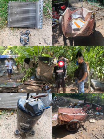 จาก นายสมเกียรติ (นามสมมุติ) ซึ่งเป็นเจ้าของร้านรับซื้อของเก่าว่ามีชาย ชื่อเล่นว่า “นายยักษ์” ได้เข็นรถสองล้อนำอุปกรณ์เครื่องปรับอากาศมาขายที่ร้าน เมื่อได้รับแจ้ง เจ้าหน้าที่ตำรวจชุดสืบสวนได้เดินทางไปตรวจสอบที่ร้าน พบว่ามีอุปกรณ์เครื่องปรับอากาศจำนวน 2 ชิ้น คือ 1. คอมเพรสเซอร์ทำความเย็น รุ่น NH 30 VLDT จำนวน 1 เครื่อง 2.คอยล์ร้อนเครื่องปรับอากาศ จำนวน 1 เครื่อง สอบถามเจ้าของร้านให้การว่า “นายยักษ์” เป็นผู้นำมาขาย ตนเกรงว่าของดังกล่าวน่าจะลักขโมยมา จึงแจ้งให้เจ้าหน้าที่ตำรวจมาตรวจสอบ จากนั้นเจ้าหน้าที่ตำรวจได้ตรวจสอบกล้องวงจรปิดของร้านรับซื้อของเก่าพบว่า วันที่ 23 กันยายน 2568 เวลาประมาณ 09.00 น. วันเวลาตามกล้องวงจรปิด มีชายสักลายบริเวณใบหน้า ซึ่งมีตำหนิรูปพรรณตรงกับ นายสนธยา หรือยักษ์ ได้นำสิ่งของทั้ง 2 ชิ้นมาขายที่ร้านนี้จริง จากนั้นเจ้าหน้าที่ตำรวจชุดสืบสวน ได้ลงพื้นที่ตรวจสอบบริเวณบ้านหลังตลาดสดเทศบาล 3 ต.มุกดาหาร อ.เมือง จ.มุกดาหาร เพื่อหาตัว นายสนธยา หรือยักษ์ ผลการตรวจสอบพบตัว นายสนธยาฯ พร้อมกับรถเข็นสองล้อ เจ้าหน้าที่ตำรวจจึงแสดงตัวเป็นเจ้าหน้าที่และขอตรวจค้น ผลการตรวจไม่พบสิ่งผิดกฎหมาย จึงได้สอบถาม นายสนธยาฯ เรื่องไปลักขโมยอุปกรณ์เครื่องปรับอากาศ นายสนธยาฯ ให้การรับสารภาพ ว่าตนได้ไปลักเอา 1.คอมเพรสเชอร์ทำความเย็น รุ่น NH 30 VLDT จำนวน 1 เครื่อง 2.คอยล์ร้อนเครื่องปรับอากาศ จำนวน 1 เครื่อง เมื่อคืนวันที่ 23 กันยายน 2568 เวลาประมาณ 04.00 น. ที่บริเวณบ้านเลขที่ 1 ถ.ประคองพันธ์ ต.มุกดาหาร อ.เมือง จ.มุกดาหาร จริง เมื่อได้ของมาแล้วได้นำใส่รถเข็นสองล้อไปขายที่ร้านรับซื้อของเก่า ต.มุกดาหาร ซึ่งได้เงินจากการของดังกล่าวจำนวน 1,000 บาท จากนั้นเจ้าหน้าที่ตำรวจชุดสืบสวนได้ทำการตรวจยึดเอาสิ่งของในการกระทำความผิด คือ 1.รถเข็นสองล้อ จำนวน 1 คัน และควบคุมตัว นายสนธยา หรือยักษ์ มาที่ร้านรับชื้อของเก่า เพื่อให้ชี้จุดถ่ายภาพประกอบการจับกุมและตรวจยึดเอาสิ่งของที่ตนมาขายคือ 1.คอมเพรสเซอร์ทำความเย็น รุ่น NH 30 VLDT จำนวน 1 เครื่อง 2.คอยล์ร้อนเครื่องปรับอากาศ จำนวน 1 เครื่อง จากนั้นนำตัวพร้อมของกลางมาที่ห้องสืบสวน สภ.เมืองมุกดาหาร เมื่อมาถึง นายสนธยาฯ พูดจาวกวนไปมา มีอาการคล้ายคนเมาสารเสพติด เจ้าหน้าที่ตำรวจจึงได้สอบถามให้การรับว่า ได้เสพยาบ้ามาก่อนที่จะถูกจับจริง จากนั้นเจ้าหน้าที่ตำรวจได้ทำการการตรวจปัสสาวะเบื้องต้น ด้วยชุดทดสอบสารเมทแอมเฟตามีนขององค์การเภสัชกรรม ซึ่ง นายสนธยา หรือยักษ์ ได้ยินยอมให้นำปัสสาวะของตน ให้เจ้าหน้าที