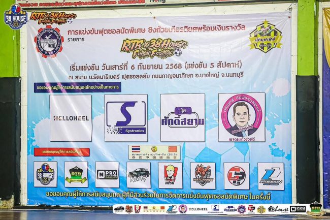 เมื่อวันเสาร์ที่ 27 กันยายน 2568 ณ สนาม ม.รัตนาธิเบศร์ ฟุตซอลคลับ อ.บางใหญ่ จ.นนทบุรี ได้มีการแข่งขัน “RTB 38 House Futsal Festival” รอบ 8 ทีมสุดท้ายไปจนถึงรอบชิงชนะเลิศ บรรยากาศเป็นไปอย่างคึกคัก เข้มข้น และเต็มไปด้วยมิตรภาพ การแข่งขันครั้งนี้เป็นไปอย่างดุเดือด แต่เปี่ยมด้วยน้ำใจนักกีฬา ทุกทีมต่างแสดงฝีมือและแทคติกอย่างเต็มที่ พร้อมเสียงเชียร์จากกองเชียร์ของแต่ละทีมที่ช่วยสร้างสีสันตลอดทั้งวัน