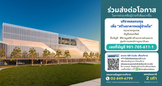 ร่วมส่งต่อโอกาสเพิ่มเตียงผู้ป่วยจาก 200 เตียงเป็น 400 เตียง พร้อมลดหย่อนภาษี 2 เท่า