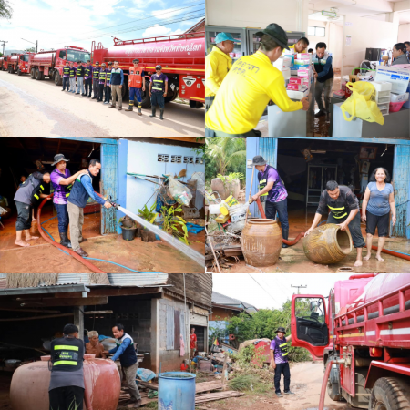 อบจ.พิษณุโลก ส่งเจ้าหน้าที่พร้อมรถน้ำช่วยทำความสะอาดบ้านเรือนประชาชน