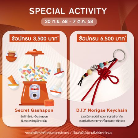 นอกจากนี้ยังมีโปรโมชั่นพิเศษ ช้อปครบ 3,500 บาท รับสิทธิ์เล่นสุ่มกาชาปอง ของขวัญสุดพิเศษ และช้อปครบ 6,500 บาท ร่วมเวิร์คชอปทำพวงกุญแจเชือกถักแบบดั้งเดิมของเกาหลีใต้ ณ Hall of Fame ชั้น ศูนย์การค้าสยามพารากอน ในระหว่างวันที่ 30 กันยายน 2568 – 7 ตุลาคม 2568