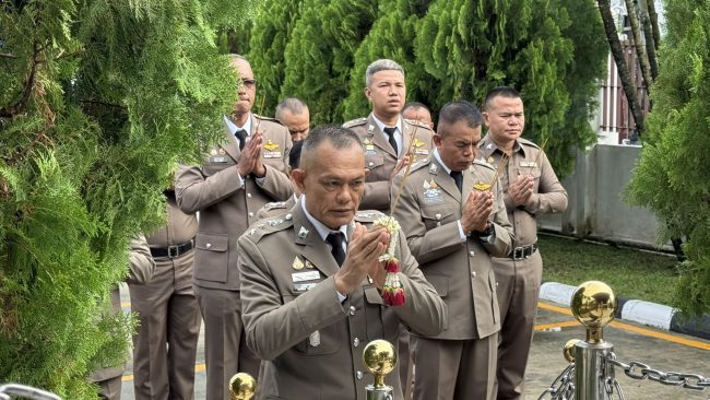 เมื่อเวลา 08.00 น. วันที่ 17 ต.ค. 68 ที่ทำการตรวจคนเข้าเมือง จ.นราธิวาส ซึ่งตั้งอยู่ อ.สุไหงโก-ลก จ.นราธิวาส พ.ต.อ.พูลศักดิ์ แก้วสีขาว ผกก..ตม.จว.นราธิวาส ได้จัดกิจกรรมเนื่องในวันตำรวจ ประจำปี 2568 ขึ้น ด้วยการยืนตรงเคารพธงชาติหน้าเสาธงอย่างพร้อมเพรียงกัน ก่อนที่ พ.ต.อ.พูลศักดิ์ ผกก.ตม.จว.นราธิวาส จะอ่านสารของ พล.ต.อ.กิตติ์รัฐ พันธุ์เพ็ชร์ ผบ.ตร.ให้ข้าราชการตำรวจ มีความสำนึกในบทบาทหน้าที่สมกับเป็นผู้พิทักษ์สันติราษฎร์ ที่เป็นพลังสำคัญในการสร้างความมั่นคงปลอดภัยให้กับสังคมไทย