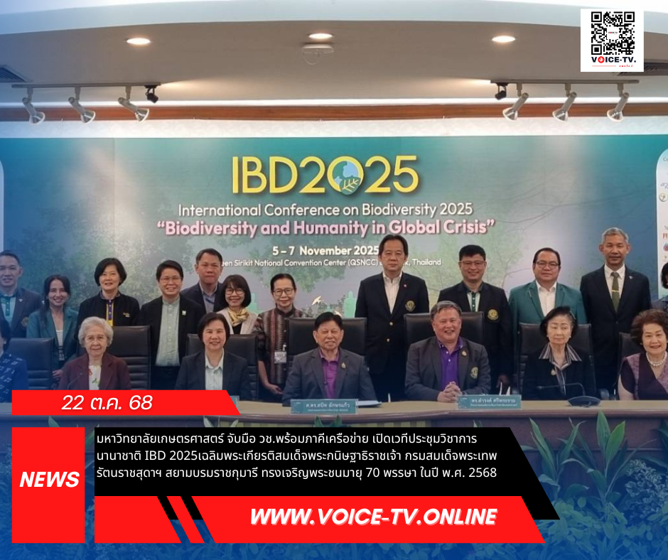 วันที่ 22 ตุลาคม 2568 ที่มหาวิทยาลัยเกษตรศาสตร์ (มก.) ได้จัดงานแถลงข่าวการจัดการประชุมวิชาการนานาชาติด้านความหลากหลายทางชีวภาพ International Conference on Biodiversity 2025 หรือ IBD 2025 ภายใต้หัวข้อ “Biodiversity and Humanity in Global Crisis” หรือ “ความหลากหลายทางชีวภาพกับมนุษยชาติ ในยุควิกฤตโลก” ระหว่างวันที่ 5–7 พฤศจิกายน 2568 ณ ศูนย์การประชุมแห่งชาติสิริกิติ์ เพื่อเฉลิมพระเกียรติ สมเด็จพระกนิษฐาธิราชเจ้า กรมสมเด็จพระเทพรัตนราชสุดาฯ สยามบรมราชกุมารี ทรงเจริญพระชนมายุ 70 พรรษา ในปี พ.ศ. 2568 และเป็นเวทีแลกเปลี่ยนเรียนรู้ระหว่างประชาคมนักวิจัยของไทยและต่างประเทศ ด้านความหลากหลายทางชีวภาพในมิติต่าง ๆ ทั้งด้านวิจัยและวิชาการ การอนุรักษ์ การป้องกัน การฟื้นฟู และการใช้ประโยชน์ จากความหลากหลายทางชีวภาพ ตลอดจนเพื่อหาแนวทางความร่วมมือในระดับสากล โดยได้รับพระมหากรุณาธิคุณจาก สมเด็จพระกนิษฐาธิราชเจ้า กรมสมเด็จพระเทพรัตนราชสุดาฯ สยามบรมราชกุมารี เสด็จ ฯ เป็นประธานพิธีเปิดและบรรยายพิเศษ โอกาสนี้คณะผู้จัดงานได้จัดทำวีดิทัศน์เฉลิมพระเกียรติชุด “เจ้าฟ้านักความหลากหลายทางชีวภาพ” ถ่ายทอดพระอัจฉริยภาพและพระมหากรุณาธิคุณในการ อนุรักษ์ ฟื้นฟู ตลอดจนองค์ความรู้ด้านความหลากหลายทางชีวภาพ เพื่อสร้างแรงบันดาลใจและให้แนวทางปฏิบัติที่เป็นรูปธรรม