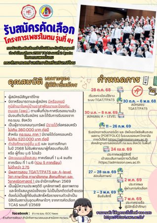 : 7 พฤษภาคม 2569 – ประกาศรายชื่อผู้มีสิทธิ์เข้าศึกษา