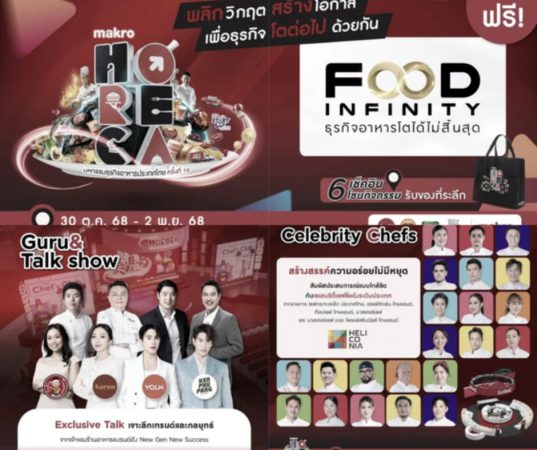 วันที่ 30 ตุลาคม 2568 แม็คโคร ผู้นำธุรกิจค้าส่ง ภายใต้ บริษัท ซีพี แอ็กซ์ตร้า จำกัด (มหาชน) จัดงาน “แม็คโคร โฮเรก้า มหกรรมธุรกิจอาหารประเทศไทย ครั้งที่ 18” งานแสดงสินค้าและนวัตกรรมธุรกิจอาหารครบวงจรที่ยิ่งใหญ่ที่สุดแห่งปี ภายใต้แนวคิด “FOOD INFINITY ธุรกิจอาหารโตได้ไม่สิ้นสุด” เพื่อผู้ประกอบการ HoReCa และคนรักการทำอาหาร สะท้อนเจตนารมณ์ของแม็คโครในการ “ยืนหยัดเคียงข้างผู้ประกอบการโฮเรก้า” เพื่อร่วมขับเคลื่อนอุตสาหกรรมอาหารไทยให้เติบโตอย่างต่อเนื่อง ไม่หยุดนิ่ง และไร้ขีดจำกัด ในปีนี้ได้รับเกียรติจาก ร้อยตรี จักรา ยอดมณี รองปลัดกระทรวงพาณิชย์ เป็นประธานในพิธีเปิด โดยมี คุณธนิศร์ เจียรวนนท์ ประธานคณะผู้บริหาร กลุ่มธุรกิจค้าส่ง บริษัท ซีพี แอ็กซ์ตร้า จำกัด (มหาชน), คุณเอกรินทร์ ลีมหารุ่งเรือง ประธานคณะกรรมการจัดงานมหกรรมธุรกิจอาหารประเทศไทย ครั้งที่ 18 และคณะผู้บริหารให้การต้อนรับ
