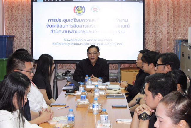 วันที่ 6 พฤศจิกายน 2568 ณ ห้องประชุมสำนักงานพัฒนาชุมชนจังหวัดปทุมธานี นายคเชนทร์ชัย แพงจันทร์ พัฒนาการจังหวัดปทุมธานี เป็นประธานเปิดการประชุมเตรียมความพร้อมคณะทำงานขับเคลื่อนการสื่อสารเสริมสร้างภาพลักษณ์สำนักงานพัฒนาชุมชนจังหวัดปทุมธานี โดยมีนายกิตติทัศน์ นาสรร ผู้อำนวยการกลุ่มงานสารสนเทศเพื่อการพัฒนาชุมชน กล่าวรายงาน กลุ่มเป้าหมายประกอบด้วย นักวิชาการพัฒนาชุมชน และเจ้าหน้าที่ผู้รับผิดชอบงานประชาสัมพันธ์ทุกกลุ่มงาน และทุกอำเภอ เข้าร่วมประชุมอย่างพร้อมเพรียง
