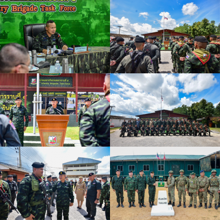 วันนี้ 5 พ.ย. 68 ที่หน่วยเฉพาะกิจกรมทหารราบที่5 พ.อ.ทวีพร คณะทอง ผบ.ฉก.ร.5 พ.ต.อ.สุรจิต เพชรจอม ผกก.สภ.สะเดา พ.ต.อ. คมเทพ เปาอินทร์ ผกก.สภ.ปาดังเบซาร์ พ.ต.อ.ยงศักดิ์ รัตนดิลก ณ ภูเก็ต ผกก.ตชด.43 พ.ต.ท.บารเมษฐ์ ยอดแดง ผบ.ร้อย ตชด.437 นางสาว ณัฐกานต์ สายน้อย นอภ.สะเดา ส่วนราชการในพื้นที่ร่วมให้การต้อนรับ พล.ท. นรธิป โพยนอก มทภ.4/ผบ.ศปก.ทภ.4 พร้อมด้วยคณะฯ ในโอกาสเดินทางมาตรวจเยี่ยมหน่วยที่ปฏิบัติงานป้องกันชายแดนไทย – มาเลเซีย ในพื้นที่ อ.สะเดา และ อ.นาทวี จ.สงขลา โดยได้ฟังคำบรรยายสรุปผลการปฏิบัติงานป้องกันชายแดนไทย – มาเลเซีย และ การดำเนินงานที่สำคัญ ของหน่วย ฉก.ร.5 พร้อมกันนี้ได้พบปะให้โอวาทแก่กำลังพล ที่ปฏิบัติงานในพื้นที่ตามแนวชายแดน ไทย – มาเลเซีย พร้อมกับมอบของบำรุงขวัญกำลังใจและเน้นย้ำการทำงานสกัดกั้นสิ่งผิดกฎหมายทุกชนิด