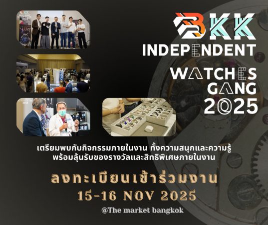 กลับมาอีกครั้งกับงานคอมมูนิตี้ของคนรักนาฬิกาแห่งปี “BKK Independent Watch Gang 2025” ครั้งที่ 2 งานรวมแบรนด์นาฬิกามากกว่า 30 แบรนด์จากหลากหลายประเทศทั่วโลก ให้ผู้เข้าชมได้เปิดโลกแห่งเรือนเวลาและแรงบันดาลใจจากนาฬิกาที่มีเอกลักษณ์เฉพาะตัว งานจัดขึ้นในวันที่ 15–16 พฤศจิกายน 2568 เวลา 10.00 – 20.00 น. บริเวณชั้น G โซน M2 ศูนย์การค้า The Market Bangkok ราชประสงค์