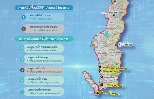 กรมชลประทาน เร่งผลักดัน 4 โครงการ อาคารบังคับน้ำเร่งด่วนในลำน้ำน่าน  เพื่อเป็นเครื่องมือสำคัญในการแก้ไขปัญหาภัยแล้งและอุทกภัยอย่างยั่งยืน คาดช่วยเพิ่มปริมาณน้ำต้นทุนในลำน้ำได้กว่า 142 ล้านลูกบาศก์เมตร และเพิ่มพื้นที่ชลประทานให้เกษตรกรกว่า 1.2 แสนไร่