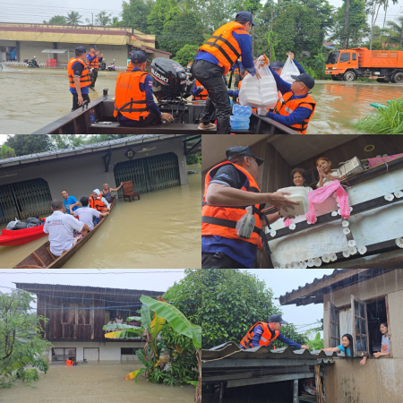 ด้าน พ.ต.จรินทร์ อินทคีรี นายทหารกิจการพลเรือน หน่วยพัฒนาการเคลื่อนที่ 41 สำนักงานภาค 4 หน่วยบัญชาการทหารพัฒนา ได้นำกำลังพลพร้อมเรือท้องแบนติดเครื่องยนต์ ออกให้การช่วยเหลือชาวบ้านลำภู ม.1 ต.ลำภู ที่มีชาวบ้านจำนวนเกือบ 20 ครัวเรือน อาศัยอยู่ที่บริเวณชั้น 2 ซึ่งกะแส้ท่หลเช่วกากและมีระดับน้ำท่วมขังสูงโดยเฉลี่ย 80 ถึง 190 ซ.ม. ซึ่งทุกคนไม่ยอมอพยพ ทางเจ้าหน้าที่ทหารจึงได้หาน้ำดื่มและอาหารกล่อง ออกตระเวนแจกจ่ายเพื่อใช้ปะทังชีวิตแล้ว