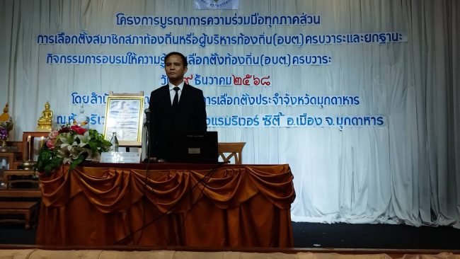กกต.มุกดาหาร จัดโครงการบูรณาการความร่วมมือของทุกภาคส่วน การเลือกตั้งสมาชิกสภาถิ่นหรือผู้บริหารท้องถิ่น