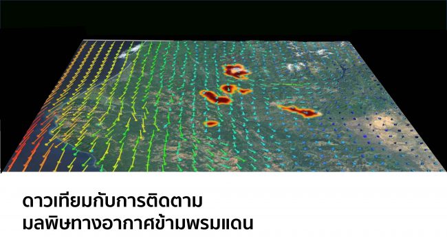“ปัจจุบันประเทศไทยมีดาวเทียมสำรวจทรัพยากรของตัวเองที่มีความสามารถสูงมาก คือดาวเทียม THEOS-2 (ธีออส 2) ที่สามารถถ่ายภาพที่มีความละเอียดสูงถึง 50 เซนติเมตร ซึ่งตอนนี้ไทยเป็นประเทศเดียวในเอเชียที่มีดาวเทียมความละเอียดสูงระดับนี้ และจากภาพถ่ายจากดาวเทียมเราพบว่ามีจุดความร้อนกระจายตัวอยู่ทั่วทั้งภูมิภาค ทำให้เห็นความจริงที่ชัดเจนว่าประเทศไทยไม่ใช่ผู้ก่อปัญหาฝุ่น PM2.5 เพียงฝ่ายเดียว แต่ในประเทศเพื่อนบ้านต่างก็มีกิจกรรมที่ก่อให้เกิดจุดความร้อนจำนวนมากเช่นกัน เพราะดาวเทียมเห็นทุกอย่าง ซึ่งทั้งมลพิษและดาวเทียมนั้นไม่มีพรมแดน มุมมองจากอวกาศจึงสะท้อนความจริงให้เห็นว่าเราทุกคนต่างมีส่วนเกี่ยวข้องในปัญหานี้ และการแก้ไขปัญหาจะต้องทำร่วมกัน ซึ่งมุมมองที่ไร้พรมแดนนี้จะช่วยเปลี่ยนแนวคิดจากการกล่าวโทษกันไปมา ไป สู่การส่งเสริมความร่วมมือระดับภูมิภาคเพื่อแก้ไขปัญหามลพิษข้ามแดน ซึ่งเป็นปัญหาร่วมกันของเราทุกคน”