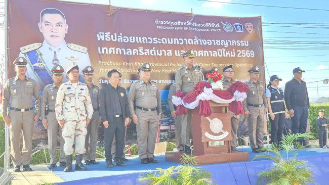 ผู้การประจวบฯ ทำพิธีปล่อยแถวระดมควาดล้างอาชญากรรมเทศกาลคริสต์มาส และเทศกาลปีใหม่ 2569