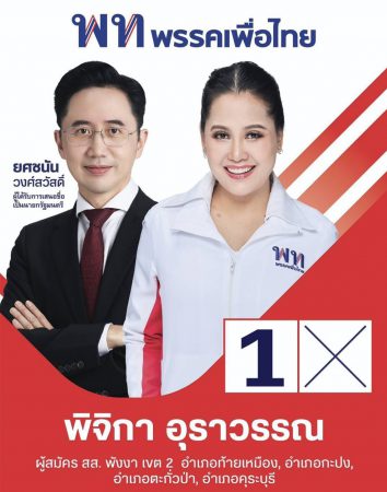 พรรคเพื่อไทย เปิดตัวผู้สมัครสมาชิกสภาผู้แทนราษฎร แบบแบ่งเขต ในพื้นที่ภาคใต้ฝั่งอันดามันอย่างเป็นทางการ โดยส่ง “น.ส.พิจิกา อุราวรรณ” นักข่าวสาวมากประสบการณ์ด้านงานสื่อสารมวลชน ลงสมัคร ส.ส. เขต 2 จังหวัดพังงา เบอร์ 1 ท้าชิงแชมป์เก่าในการเลือกตั้งที่จะมีขึ้นในวันที่ 8 กุมภาพันธ์นี้ พร้อมตั้งเป้าปักธงชัยในพื้นที่ภาคใต้เป็นครั้งแรกในรอบกว่า 20 ปี