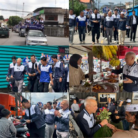 แม่ทัพภาคใต้แห่งภูมิใจไทยพิพัฒน์ ควงบุตรชายปิดเมืองตันหยงมัส เดินอ้อนขอคะแนนเสียงหนุนผู้สมัคร มั่นใจปักธงนราฯทุกเขต ชูนโยบายดันราคาดันราคาเกษตร เพิ่มโควตาฮัจญ์ คืนสันติสุขชายแดนใต้