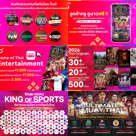 ทรูวิชั่นส์ นาว เดินหน้ายกระดับความบันเทิงไทยสู่มาตรฐานสากล ผนึกกำลังพันธมิตรและสตูดิโอชั้นนำทั่วไทย สร้างสรรค์ความบันเทิงที่ “รู้ใจ” และ “เข้าถึง” อารมณ์คนไทยอย่างแท้จริง ครอบคลุมตั้งแต่การผลิต Thai Originals คุณภาพระดับสากลหลากหลายรูปแบบตลอดทั้งปี เรียลลิตี้ชั้นนำ สุดยอดคอนเทนต์กีฬาระดับโลก รวมถึงการถ่ายทอดสดมวยไทยมากที่สุดในประเทศไทยเอกสิทธิ์เฉพาะลูกค้าทรูวิชั่นส์ นาวเท่านั้น พร้อมเสริมความแข็งแกร่งด้านไลฟ์สไตล์ด้วยการจับมือกับ 6 แบรนด์คอนเทนต์ระดับสากล และยกระดับประสบการณ์การรับชมผ่าน แอปพลิเคชัน ทรูวิชั่นส์ นาว โฉมใหม่ มั่นใจว่าทุกก้าวสำคัญเหล่านี้จะช่วยส่งมอบความสุขและความสนุกให้ผู้ชมอย่างต่อเนื่องในทุกวัน