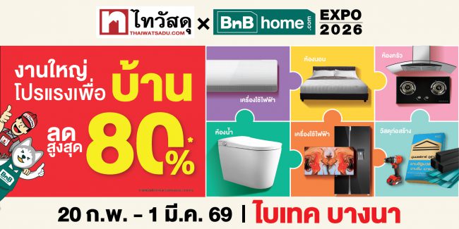 ไทวัสดุ และบีเอ็นบี โฮม ผู้นำธุรกิจค้าปลีกวัสดุก่อสร้างและสินค้าตกแต่งบ้าน ภายใต้บริษัท ซีอาร์ซี ไทวัสดุ จำกัด ในเครือเซ็นทรัล รีเทล ต้อนรับปีม้าไฟ เล่นใหญ่รับต้นปีจัดมหกรรมสินค้าเพื่อบ้านที่ใหญ่ที่สุดแห่งปี “ไทวัสดุ x บีเอ็นบี โฮม เอ็กซ์โป 2026” ยกทัพขบวนสินค้าวัสดุก่อสร้างและสินค้าตกแต่งบ้าน เฟอร์นิเจอร์ สุขภัณฑ์ เครื่องใช้ไฟฟ้า สินค้า และไลน์สินค้าเพื่อคนรักบ้านแบบครบวงจร มอบความคุ้มค่ากับส่วนลดสูงสุด 80 % พร้อมพบกับโปรโมชั่นเด็ดและสิทธิพิเศษอื่น ๆ อีกมากมาย ตลอด 10 วันเต็ม! ให้คุณได้ช้อปครบจบทุกความต้องการเรื่องบ้านในงานเดียวตั้งแต่วันที่ 20 ก.พ. – 1 มี.ค. 69 ณ ไบเทค บางนา
