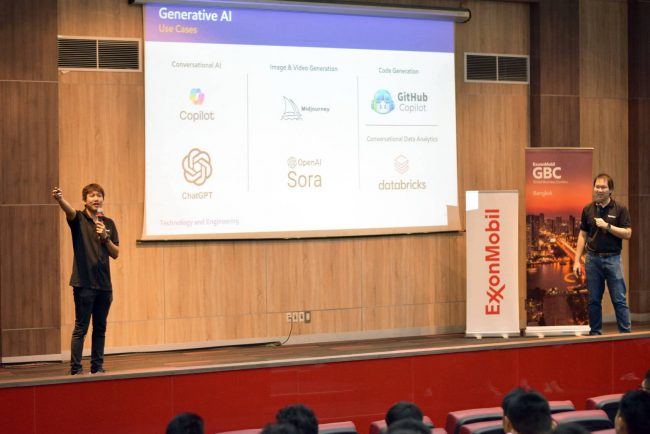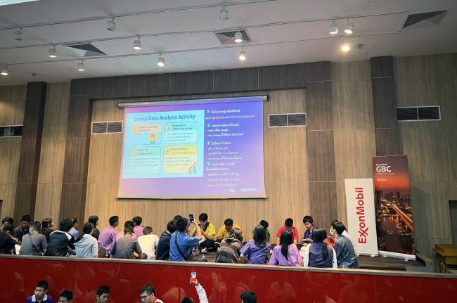 นอกจากการสนับสนุนด้านงบประมาณ พนักงานฝ่ายเทคโนโลยีสารสนเทศของเอ็กซอนโมบิลยังร่วมถ่ายทอดประสบการณ์จริงในการทำงานด้าน ปัญญาประดิษฐ์ (AI) และ การวิเคราะห์ข้อมูล (Analytics) พร้อมจัดกิจกรรมกลุ่มเพื่อให้น้อง ๆ ได้ทดลองคิดและแก้โจทย์ปัญหา