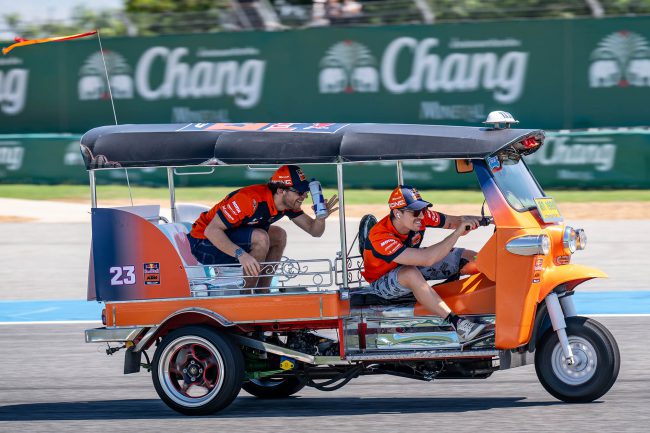 การแข่งขัน พีที กรังด์ปรีซ์ ออฟ ไทยแลนด์ สร้างประวัติศาสตร์หน้าใหม่ให้กับวงการมอเตอร์สปอร์ตโลก โดยฝ่ายจัดการแข่งขัน โมโตจีพี สร้างสีสันให้กับกิจกรรม Rider Parade แบบเดิมๆที่จะนำนักแข่งโมโตจีพีขึ้นรถบรรทุกทักทายแฟนรอบสนาม มาเป็น “ตุ๊กตุ๊ก ชาลเลนจ์” ส่งนักแข่ง โมโตจีพี ทั้ง 22 คน จาก 11 ทีม จับคู่กันลงขับ “รถตุ๊กตุ๊ก” ดวลความเร็วในวันอาทิตย์ที่ 1 มีนาคม 2569 สร้างสีสันก่อนจะดวลเมนเรซ กระหึ่มสร้างไวรัลครั้งใหม่ไปทั่วโลก