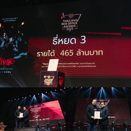M Studio และ ช่อง 3 สร้างสถิติครั้งสำคัญให้วงการภาพยนตร์ไทย หลังภาพยนตร์ “ธี่หยด 3” ทำรายได้รวมทั่วประเทศ 465 ล้านบาท คว้ารางวัลภาพยนตร์ที่มีรายได้สูงสุดแห่งปี 2025 จากเวที Thailand Box Office Awards 2025 ที่จัดขึ้นเพื่อยกย่องภาพยนตร์ไทยที่ประสบความสำเร็จทั้งด้านรายได้และคุณภาพการผลิต ณ โรงละครอักษรา คิง เพาเวอร์ ซึ่งตอกย้ำความแข็งแรงของแฟรนไชส์ที่สามารถรักษาฐานผู้ชมได้อย่างต่อเนื่องในทุกภาค