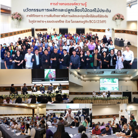 กระทรวงการอุดมศึกษา วิทยาศาสตร์ วิจัยและนวัตกรรม (อว.) โดย สถาบันวิจัยวิทยาศาสตร์และเทคโนโลยีแห่งประเทศไทย (วว.) จัดกิจกรรม ถ่ายทอดองค์ความรู้นวัตกรรมการผลิตและปลูกเลี้ยงไม้ดอกไม้ประดับ ภายใต้ โครงการเพิ่มศักยภาพในการผลิตและปลูกเลี้ยงไม้ดอกไม้ประดับในภูมิภาคต่าง ๆ ของประเทศไทย ด้วยโมเดลเศรษฐกิจ BCG ในวันที่ 25 มีนาคม 2569 ณ โรงแรมนภาลัย จังหวัดอุดรธานี โดยได้รับความสนใจจากเกษตรกรและผู้ประกอบการด้านไม้ดอกไม้ประดับ พร้อมหน่วยงานภาคเครือข่ายภาครัฐ-เอกชน เข้าร่วมกิจกรรมอย่างคับคั่ง