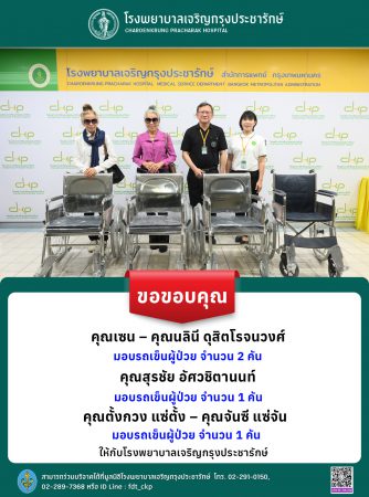 รพ.เจริญกรุงประชารักษ์ รับมอบบริจาครถเข็นผู้ป่วย 4 คัน เพื่ออำนวยความสะดวกและยกระดับการดูแลผู้รับบริการ