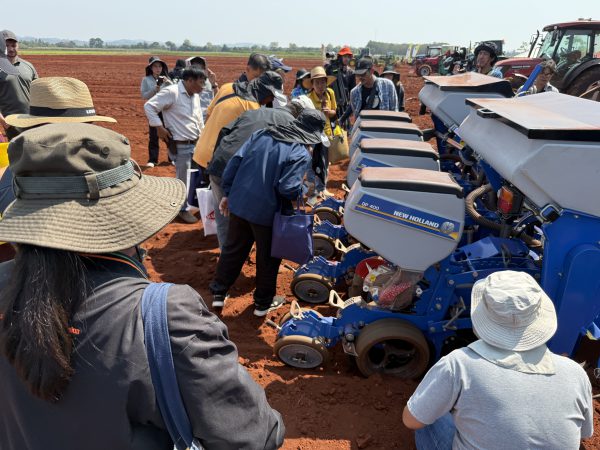 เครื่องหยอดเมล็ดพันธุ์ที่ติดตั้งเข้ากับรถแทรกเตอร์ นิว ฮอลแลนด์ รุ่น T6070 ได้รับความสนใจจากผู้เข้าร่วมงานเป็นจำนวนมาก