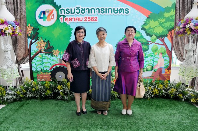 อธิบดีกรมวิชาการเกษตร กล่าวเพิ่มเติมว่า งานวันคล้ายวันสถาปนากรมวิชาการเกษตรจะจัดขึ้นในวันที่ 1 ตุลาคมเป็นประจำทุกปี และในปีนี้นายเฉลิมชัย ศรีอ่อน รัฐมนตรีว่าการกระทรวงเกษตรและสหกรณ์ ได้ส่งสารมาแสดงความยินดีและมอบหมายให้นางอุมาพร พิมลบุตร รองปลัดกระทรวงเกษตรและสหกรณ์ มาเป็นประธานในพิธีวันคล้ายวันสถาปนากรมวิชาการเกษตรครบรอบปีที่47 และมอบนโยบายการดำเนินงานด้านการวิจัยและพัฒนาพืชให้แก่คณะผู้บริหารและนักวิชาการของกรมวิชาการเกษตร ซึ่งกรมวิชาการเกษตรจะได้นำมาเป็นแนวทางในการปฏิบัติงานด้านการวิจัยและพัฒนาเทคโนโลยีทางการเกษตรต่อไป พร้อมขับเคลื่อนผลงานวิจัยไปสู่การนำไปใช้ประโยชน์ในการพัฒนาปรับปรุงการผลิตพืชของเกษตรกร ให้ได้ผลผลิตที่มีคุณภาพตรงตามความต้องการของตลาดสินค้าเกษตร พร้อมร่วมบูรณาการสืบสานต่อยอดศาสตร์พระราชาให้เกิดผลเป็นรูปธรรมอย่างแท้จริง