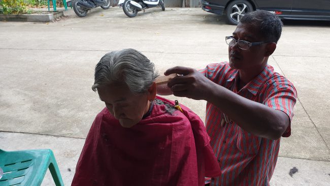 นอกจากนี้ภายในงานยังได้จัดให้มีบริการตัดผมผู้สูงอายุชาย-หญิง จำนวน 56 คน ซึ่งมีอายุระหว่าง 60-87 ปี โดยชมรมจิตอาสาบาร์เบอร์ประจวบคีรีขันธ์ นอกจากนี้ยังได้มีการตรวจสุขภาพให้กับผู้สูงอายุโดย อสม.ชุมชนนางรอง พร้อมกับสำรวจชีวิตความเป็นอยู่ และแจกจ่ายข้าวสารอาหารแห้ง เพื่อเป็นการบรรเทาค่าครองชีพให้กับครอบครัวผู้สูงอายุที่มีฐานะยากจนภายในชุมชน เพื่อเป็นการสร้างขวัญกำลังใจ ส่งเสริมสุขภาพจิต และพัฒนาคุณภาพชีวิตผู้สูงวัยภายในชุมชนให้ดีขึ้น โดยกิจกรรมในครั้งนี้สามารถเรียกรอยยิ้มแห่งความสุขของผู้สูงอายุภายในชุมชนได้อย่างมากเลยทีเดียว