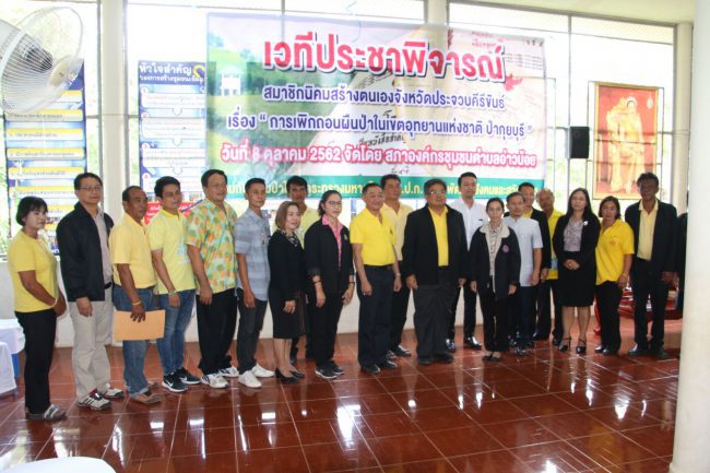 วันที่ 8 ตุลาคม 2562 ที่ศาลาหมู่ 14 บ้านทุ่งยาว ต.อ่าวน้อย อ.เมือง ประจวบคีรีขันธ์ สภาองค์กรชุมชนตำบลอ่าวน้อย ร่วมกับ กรมป่าไม้ – กระทรวงมหาดไทย – ส.ป.ก.- กรมพัฒนาสังคมและสวัสดิการ กระทรวงพัฒนาสังคมและความมั่นคงของมนุษย์ จัดเวทีประชาพิจารณ์สมาชิกนิคมสร้างตนเองจังหวัดประจวบคีรีขันธ์ ที่ได้รับความเดือดร้อนเอกสารสิทธิ์ที่ดินเขตนิคมสร้างตนเองจังหวัดประจวบคีรีขันธ์ น.ค.3 ไม่สามารถนำไปออกเป็นโฉนดที่ดินได้