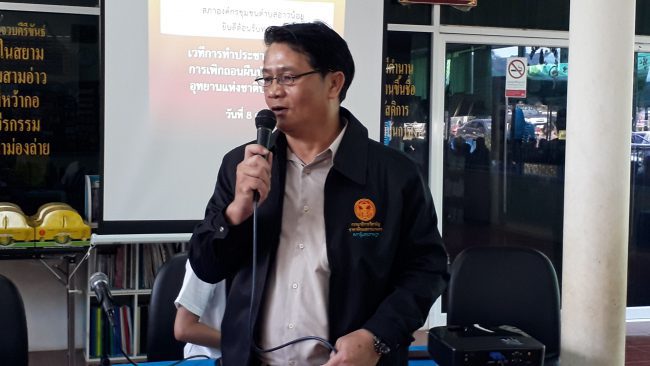 จากนั้นนายดิเรก จอมทอง ผู้ประสานงานคณะกรรมการเพื่อติดตามการแก้ไขปัญหาที่ดินเขตนิคมสร้างตนเองฯ ได้ชี้แจงรายละเอียดขั้นตอนการทำงานของคณะกรรมการฯ นับตั้งแต่เดือนมีนาคม ที่ผ่านมาจนมาถึงวันนี้ให้ที่ประชุมทราบ จากนั้น นายอรรณพ กล่าวว่าปัจจุบันกรมป่าไม้ต้องบริหารจัดการที่ดินมากกว่า 1,200 แปลงทั่วประเทศ ในส่วนของที่ดินทับซ้อนเขตนิคมสร้างตนเองอ่าวน้อย ทางอธิบดีกรมป่าไม้มีนโยบายให้เร่งรัดดำเนินการอยู่แล้ว จากนโยบายที่ดินใดที่เป็นเขตป่าสงวนแห่งชาติและหน่วยงานรัฐนำไปจัดสรรเพื่อประโยชน์แก่ราษฎรแล้วนั้น ไม่มีเหตุผลใดที่ทางกรมป่าไม้จะเรียกคืนมาเป็นของรัฐ เพียงแต่ต้องดำเนินการให้รอบคอบ มีหลักเกณฑ์ที่ถูกต้องตามกฎหมาย การทำประชาพิจารณ์ในวันนี้ถือเป็นเรื่องที่ดีเพราะประชาชนเข้ามามีส่วนร่วมเป็นจำนวนมาก ดังนั้นจึงขอให้ทางสภาองค์กรชุมชนและสมาชิกนิคมสร้างตนเองตำบลอ่าวน้อยคลายความกังวลกับเรื่องนี้ แต่ขอให้กลับไปทบทวนดำเนินการเรื่องที่เกี่ยวข้องกับนิคมฯ ให้เรียบร้อย ในส่วนงานของกรมป่าไม้เมื่อดำเนินการเสร็จสิ้นทั้งหมดจะถูกรวบรวมนำส่งคณะรัฐมนตรีเพื่อแก้ไขกฎกระทรวงซึ่งคาดว่าจะแล้วเสร็จภายในปี 2563 นี้