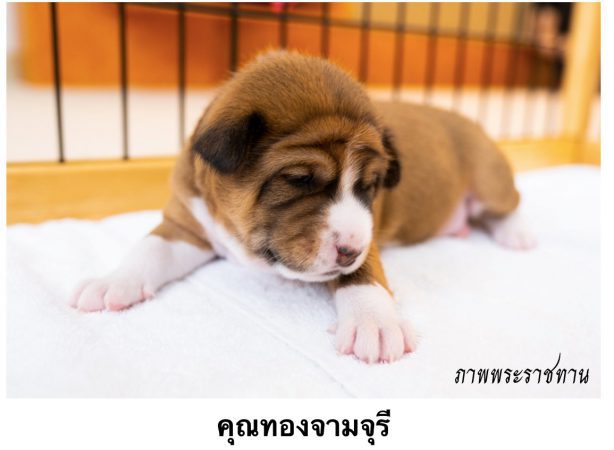 ชุดที่ 1 น้ำเชื้อแช่แข็งของ “คุณทองเอก” ( ลูกคุณทองแดงลำดับที่ 3 ) ผสมเทียมกับสุนัขหลวงชื่อ “คุณแอสลี่” พันธุ์บาเซนจิ เมื่อวันเสาร์ที่ 20 เมษายน 2562 จนประสบความสำเร็จตั้งท้องและมีการคลอดลูกสุนัขด้วยวิธีธรรมชาติ ณ โรงพยาบาลสัตว์ มหาวิทยาลัยเกษตรศาสตร์ บางเขน จำนวน 5 สุนัข เมื่อวันจันทร์ที่ 17 มิถุนายน 2562 และทรงพระราชทานชื่อสุนัขทั้ง 5 สุนัข ดังนี้