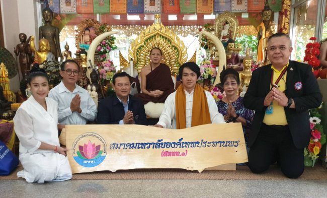 พระภาวนารัตนญาณ (วิ) ครูบาอริยชาติ อริยจิตฺโต เจ้าอาวาสวัดแสงแก้วโพธิญาณ อ.แม่สรวย จ.เชียงราย ได้โปรดเมตตาเจิมป้าย “สมาคมเทวาลัยองค์เทพประทานพร (สททท.)” เพื่อเป็นสิริมงคล และให้พรให้สมาคมฯ. ผู้บริหารสมาคม และสมาชิกสมาคมทุกท่าน เจริญรุ่งเรืองในหน้าที่การงานและอยู่เย็นเป็นสุข โดยมี นายอนันต์ นิลมานนท์ นายกสมาคม สททท. พร้อมด้วย อาจารย์มังกร พันเศียร ประธานฝ่ายพิธีกรรม สมาคม สททท., นายธวัชชัย เฟื่องอนันต์ อุปนายก สมาคม สททท., พ.ต.อ.นพดล นิลมานนท์ อดีตรอง ผบก.ปส.3-คุณ ชญาทิปภา นิลมานนท์ ( ภริยา ) และ คุณวรัชยา วงษ์ธัญญะ (คุณบัว) เหรัญญิกสมาคม สททท. ร่วมในพิธีด้วย