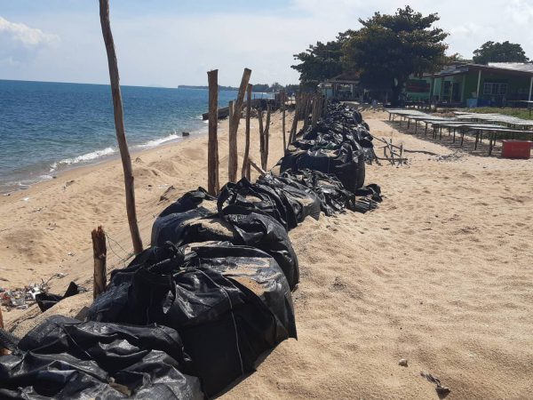 ผู้สื่อข่าวรายงานว่า ปัญหาผลกระทบจากคลื่นทะเลกัดเซาะชายฝั่งที่หาดทุ่งประดูอย่างต่อเนื่องนานหลายปี ทำให้บ้านพังหลายหลัง ล่าสุดมีชาวบ้านที่ได้รับผลกระทบประกาศขายบ้านพร้อมที่ดินในราคา 12 ล้านบาท หลังจากซ่อมแล้ว 3 ครั้ง ด้านนางแก้ว ศรีชะเอม นายอารมณ์ ศรีอิ่ม ชาวประมงหาดทุ่งประดู่ ที่อาศัยอยู่ริมหาด ระบุว่า ไม่ทราบว่าในถุงบิ้กแบ็คสีดำที่นำมาใส่ทราย วางเป็นแนวป้องกันคลื่น จะเป็นถุงที่มีสารเคมี เพราะชาวบ้านไม่มีความรู้ หากจะนำออกไปต้องนำถุงบิ้กแบ็คที่ไม่มีผลกระทบมาเปลี่ยนให้ทันที เพื่อความปลอดภัยในทรัพย์สินของชาวบ้าน