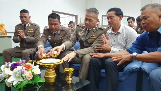 โดยในพิธีตั้งแต่ช่วงเช้าจะเป็นพิธีบูชาพระภูมิเจ้าที่ ศาลตา-ยาย พิธีบูชาอนุสาวรีย์วีรชนข้าราชการตำรวจ เคารพธงชาติ พร้อมกล่าวคำปฏิญาณเนื่องในวันตำรวจ และอ่านสารของผู้บัญชาการตำรวจแห่งชาติ เนื่องในวันตำรวจประจำปี 62 ต่อด้วยพิธีบูชาอัฐิบรรพบุรุษ ทำบุญเลี้ยงพระสร้างความเป็นสิริมงคล และอุทิศส่วนบุญส่วนกุศลไปให้ข้าราชการตำรวจที่ล่วงลับไปแล้ว