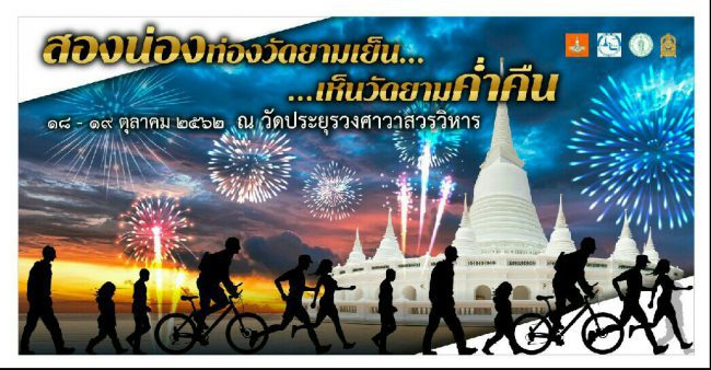 เวลา 18.00 น. พร้อมกันที่ลานหน้าพระบรมธาตุมหาเจดีย์ วัดประยูรวงศาวาส / ลงทะเบียน
