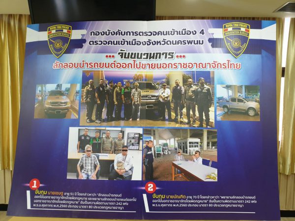 ปรากฏว่าหนังสือเดินทางรถยนต์เป็นเล่มใหม่และโอนกรรมสิทธิ์ภายในวันเดียวกัน คู่มือการจดทะเบียนรถมีการโอนและต่อทะเบียนมีลักษณะที่ผิดสังเกต ภายในรถไม่มีสิ่งของเครื่องใช้จำเป็นในการเดินทาง เมื่อตรวจสอบในระบบสารสนเทศ สตม.พบว่านายเชษฐมีประวัติการนำรถยนต์ออกไปนอกราชอาณาจักร 2 ครั้ง แต่เดินทางกลับทางเรือโดยสารเข้ามาทางท่าเทียบเรือนครพนม โดยไม่นำรถยนต์กลับเข้ามาด้วย จึงประสานเจ้าหน้าที่ศุลกากรนครพนม ตรวจสอบโดยละเอียดพบว่านายเชษฐมีประวัติในใบขนสินค้าพิเศษสำหรับยานพาหนะออกไปยัง สปป.ลาว จำนวน 2 ครั้ง ครั้งแรกวันที่ 18 ธ.ค.61 รถยนต์กระบะยี่ห้อโตโยต้า ทะเบียน xxxx นครพนม ครั้งที่สองวันที่ 27 ธ.ค.61 รถยนต์กระบะยี่ห้อโตโยต้า ทะเบียน xxxx นครพนม ไม่มีการแจ้งนำกลับเข้ามาในราชอาณาจักร ซึ่งนายเชษฐ ยอมรับว่าได้ขายรถยนต์ดังกล่าวให้ผู้ซื้อที่ สปป.ลาว แล้ว และครั้งนี้จะนำรถยนต์ออกไปขายยัง สปป.ลาว อีก โดยโอนกรรมสิทธิ์รถยนต์ให้นายบัณฑิตเป็นเจ้าของแทน เพื่อป้องกันไม่ให้เจ้าหน้าที่ตรวจพบ พฤติการณ์จึงเป็นความผิดตามข้อกล่าวหาดังกล่าว ในการสกัดกั้นจับกุมผู้ลักลอบนำรถยนต์ไปขายยังประเทศเพื่อนบ้าน ตม.จว.นครพนม ได้ดำเนินการขยายผลเพื่อจับกุมเครือข่ายผู้กระทำความผิดอย่างต่อเนื่อง โดยมีการประสานแลกเปลี่ยนข้อมูลกับหน่วยงานต่างๆ ทั้งศุลกากรจังหวัดนครพนม สำนักงานขนส่งจังหวัดนครพนม และ กก.สส.ภ.จว.นครพนม