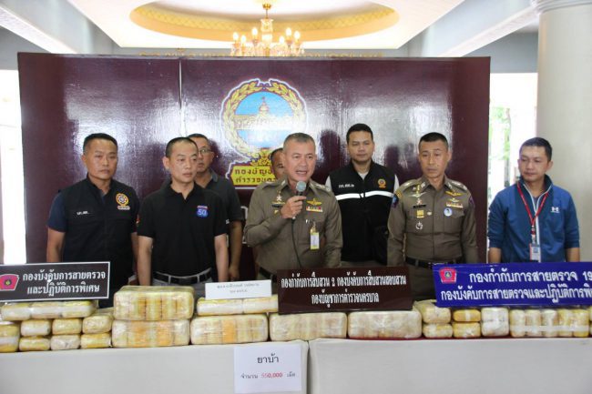 พล.ต.ต.พีระพงศ์ วงษ์สมาน รอง ผบช.น. แถลงข่าวผลการจับกุมผู้ต้องหาในขบวนการลำเลียงยาเสพติดรายใหญ่ ยาบ้า 550,000 เม็ด