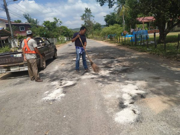 รองนายก อบจ.มุกดาหาร ลุยงานเร่งซ่อมแซมถนน