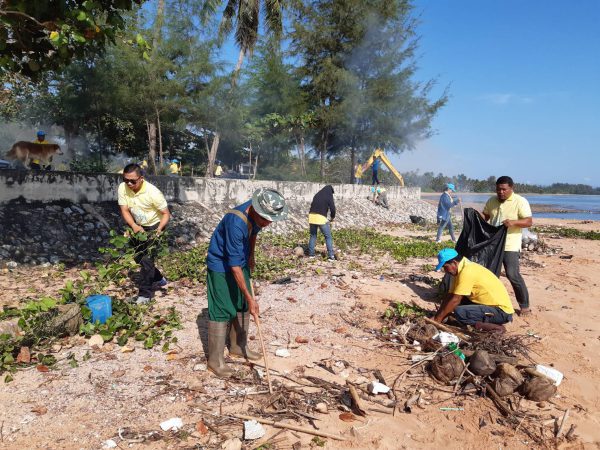 โดยได้ร่วมกันพัฒนาทำความสะอาดเก็บขยะบริเวณชายหาดฝั่งแดงตลอด อาทิเช่น ขวดเหล้า-เบียร์ กล่องโฟม ถุงพลาสติก และขยะพลาสติกอื่นๆ ที่ประชาชนและนักท่องเที่ยวใช้สอยแล้วก็ได้ทิ้งลงชายหาด รวมถึงขยะทะเลที่ชาวประมงเลิกใช้งานแล้วทิ้งลงทะเลแล้วถูกคลื่นซัดเข้ามาหาชายฝั่ง เช่น โฟม อุปกรณ์ตาข่ายจับปลา และขยะพลาสติก เป็นต้น ทั้งนี้เพื่อเป็นการรักษาความสะอาดชายหาดให้สวยงาม สร้างภาพลักษณ์ที่ดีด้านการท่องเที่ยวของอำเภอเป็นแบบอย่างและปลูกจิตใต้สำนึกให้กับประชาชนและนักท่องเที่ยวได้ร่วมกันอนุรักษ์สิ่งแวดล้อม เลิกทิ้งขยะมูลฝอยลงทะเลและชายหาด อีกทั้งเพื่อเป็นการช่วยชีวิตสัตว์ทะเล และลดอัตราการเสียชีวิตของสัตว์ทะเลที่เสียชีวิตจากการกลืนกินขยะพลาสติกอีกทางหนึ่งด้วย