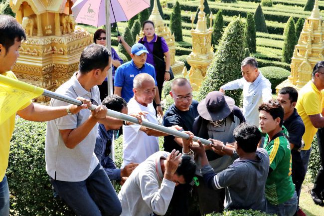 วันนี้ 26 ต.ค.62 มร.เชอริง ต๊อบเกย์ อดีตนายกรัฐมนตรี พร้อมด้วย นายกัมพล ตันสัจจา ประธานสวนนงนุชพัทยา ประเทศภูฏาน และคณะ รวมทั้งผู้บริหารสวนนงนุชพัทยา ได้ร่วมกันประกอบพิธีอัญเชิญ “ธงมนตรา” จาก ประเทศภูฏาน จำนวน 9 ผืน สัญลักษณ์ตัวแทนแห่งความโชคดี ขึ้นสู่ยอดเสา ณ ศาลาเทวดา สวนนงนุชพัทยา จ.ชลบุรี เพื่อความเป็นสิริมงคล โดยนิมนต์พระครูเกษมกิตติโสภณ (อาจารย์จ่อย) เจ้าอาวาสวัดสามัคคีบรรพต พร้อมด้วยคณะสงฆ์ มาประกอบพิธีเจิมธงมนตรา สวดชัยมงคลคาถา พร้อมลั่นกลองสะบัดชัย และเป่าแตรสังข์ เพื่อแสดงถึงความสำเร็จ ชัยชนะ ความเป็นสิริมงคล และความโชคดี เนื่องโอกาสใกล้เทศกาลปีใหม่ 2563