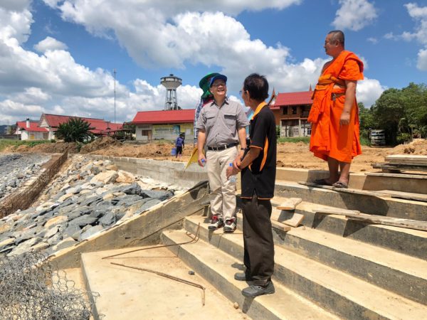 จากนั้นคณะทั้งหมดได้เดินทางต่อไปยังวัดอุดมพลาราม(ไร่บน) เพื่อสังเกตการณ์โครงการก่อสร้างเขื่อนป้องกันตลิ่งริมแม่น้ำกุยบุรี บริเวณวัดไร่บน ม.2 ต.หาดขาม อ.กุยบุรี จ.ประจวบคีรีขันธ์ ความยาว 1,040 เมตร ซึ่งเป็นโครงการก่อสร้างแบบหินทิ้งเสริมคันคอนกรีตเสริมเหล็ก ได้รับความเมตตาจาก ท่านพระครูอุดม ธรรมวิภาส เจ้าอาวาสและเจ้าคณะตำบลหาดขาม ให้รายละเอียดและนำชมสถานที่ก่อสร้างในโครงการ