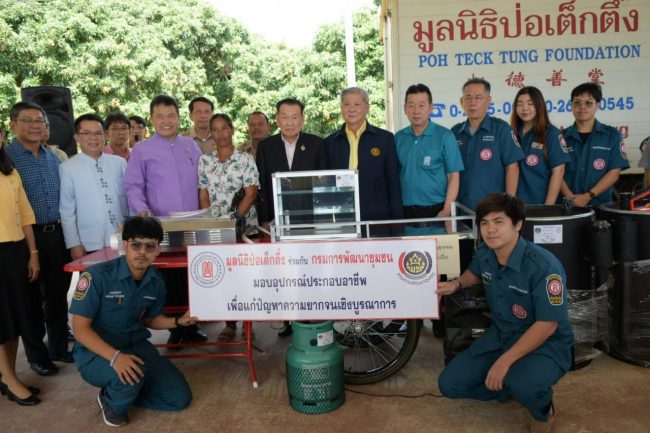 มูลนิธิป่อเต็กตึ๊ง ร่วมกับ กรมการพัฒนาชุมชน รุกแก้ปัญหาความยากจนเชิงบูรณาการต่อเนื่อง มอบอุปกรณ์การประกอบอาชีพช่วยเหลือครัวเรือนยากจน จังหวัดจันทบุรี ตราด และชลบุรี
