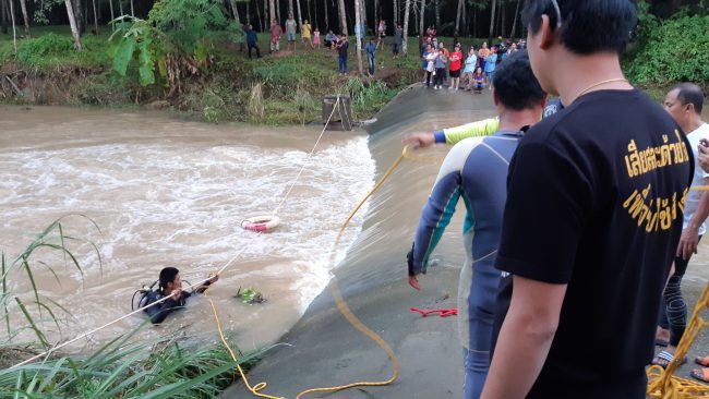 ระดมกู้ภัย มนุษย์กบ ดำค้นหา “น้องพิตต้า วัย 2 ขวบ” ที่จมหาย หลังน้ำแรง พัดรถหลุดฝายลงคลอง
