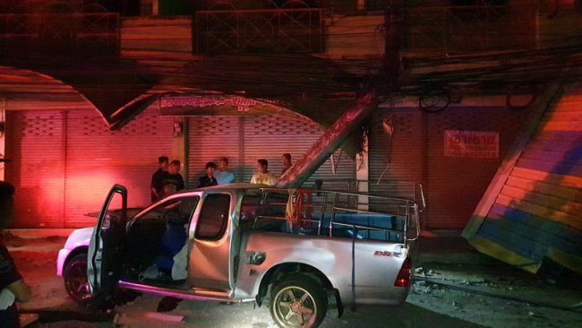 กลับไม่ถึงบ้าน! 2หนุ่มต่างแดน ซิ่งกระบะเสยเสาไฟฟ้าหัวระเบิดดับ 1ราย