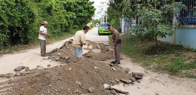 ชลบุรี รวมพลัง ผญ.บ.และลูกบ้านซ่อมแซมถนนพัง