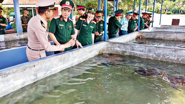 รอง จก.ฝ่ายการเมือง ภูมิภาคทหาร 1 กองทัพเวียดนาม เยี่ยมชมศูนย์อนุรักษ์พันธุ์เต่าทะเล ทร.