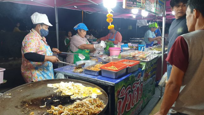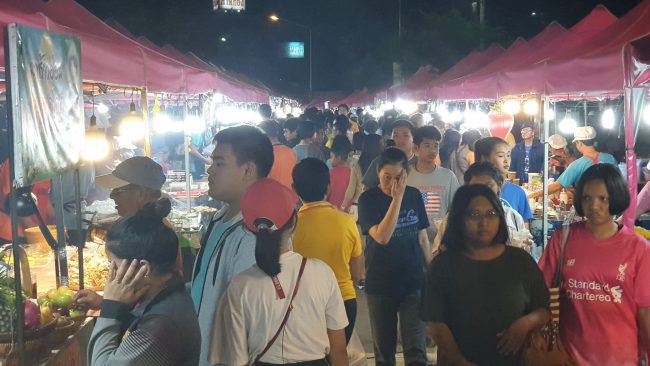 โดยในวันนี้พบว่าพ่อค้า-แม่ค้า มีสีหน้าที่ยิ้มแย้มแจ่มใส ที่ได้กลับมาจำหน่ายสินค้าที่ตลาดแห่งนี้อีกครั้ง หลังจากที่ต้องหยุดจำหน่ายสินค้ามานาน 3 สัปดาห์ ทำให้ขาดรายได้เลี้ยงดูครอบครัว และเงินส่งลูกไปเรียนหนังสือ และพบว่ามีประชาชนชาวประจวบรวมถึงนักท่องเที่ยวต่างจังหวัดเดินทางมาท่องเที่ยวจับจ่ายซื้อสินค้ากันอย่างเนืองแน่น ซึ่งตลาดแห่งนี้มีการจำหน่ายสินค้าประเภทของกินที่หลากหลาย อาหารสดและใหม่ เช่น ผักสดสวนครัว ผลไม้ อาหารทะเลปิ้ง-ย่าง ลวกจิ้มพร้อมรับประทาน อาหารพื้นถิ่นสินค้าของกินของฝากหลากชนิด หอยทอด ผัดไทย ไส้กรอก ลูกชิ้นลวก ฯลฯ เป็นต้น
